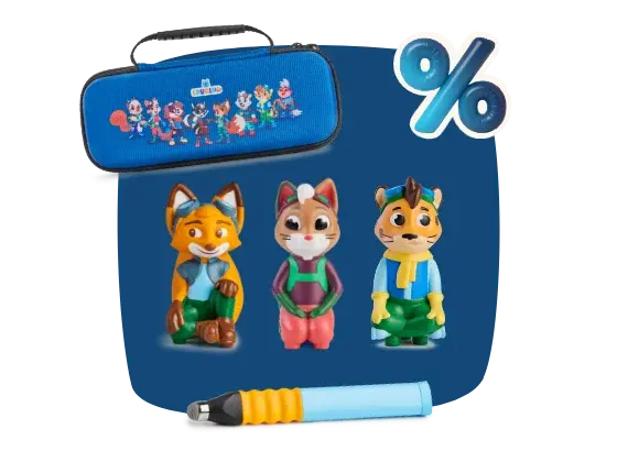 Each Starter Set or Bundle comes with loveable figurines that unlock magical learning worlds, an ergonomic pen, and access to our fun-filled Play & Learn app.
