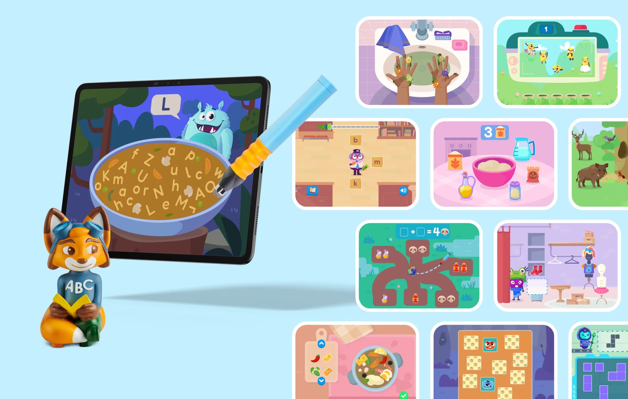 Each Starter Set or Bundle comes with loveable figurines that unlock magical learning worlds, an ergonomic pen, and access to our fun-filled Play & Learn app.