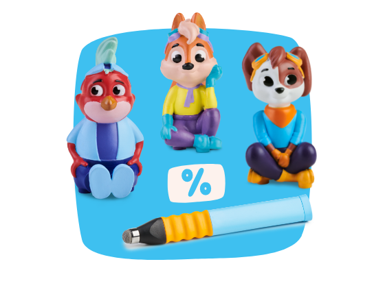 Each Starter Set or Bundle comes with loveable figurines that unlock magical learning worlds, an ergonomic pen, and access to our fun-filled Play & Learn app.
